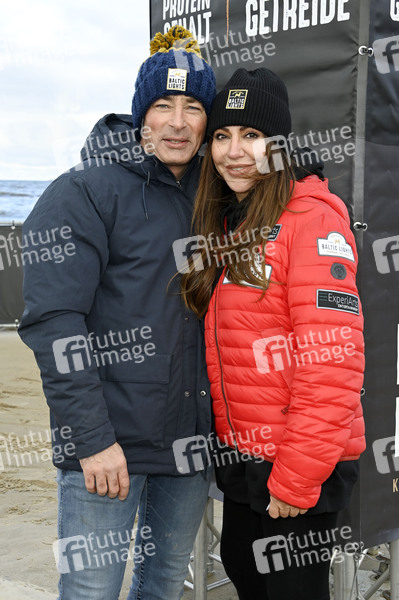 Jan Sosniok und Simone Thomalla beim Kennenlernen der Hunde und beim Renntraining für die Baltic Lights 2022 an der Seebrücke Heringsdorf. Heringsdorf, 04.03.2022