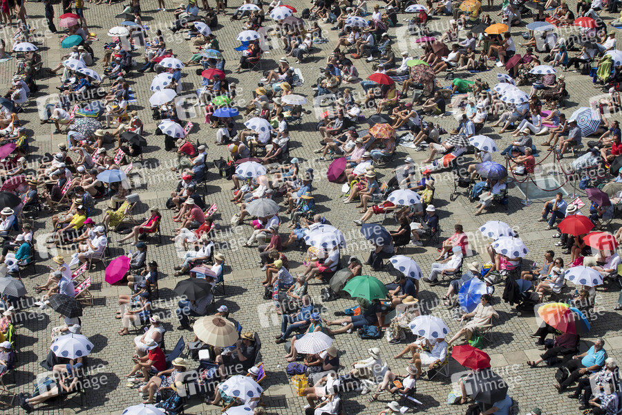 Klassik, Musik, Konzert, Auftritt, Bühne, live, Unterhaltung, Entertainment, Kultur, Open Air, Gratis Konzert, Staatskapelle Berlin, Orchester, Musiker, Gratiskonzert, Gratisveranstaltung, Stadtmitte, Sonnenschirm, Sonnenschutz, Konzertbesucher, Publikum, Bestuhlung, Menschenmenge