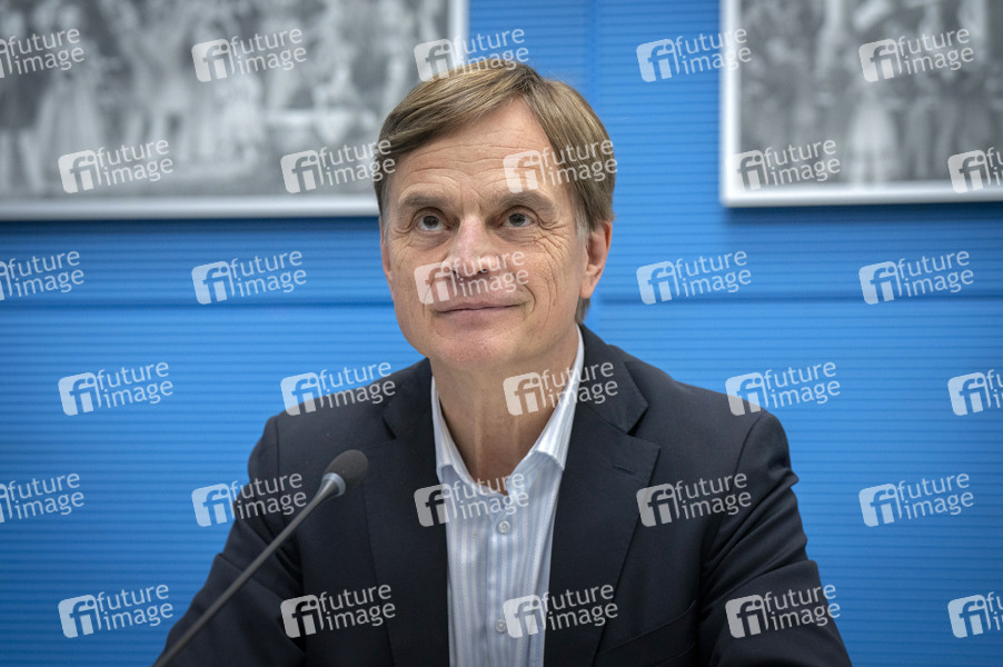 Bernd Baumann beim Pressestatement zur Fraktionssitzung der AfD-Bundestagsfraktion im Reichstagsgebäude. Berlin, 10.02.2025