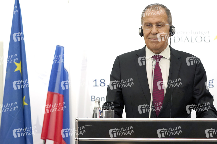 Sergei Wiktorowitsch Lawrow / Sergey Lavrov bei einer Pressekonferenz zur Eröffnung vom 18. Petersburger Dialog 2019 im Steigenberger Hotel. Königswinter, 18.07.2019