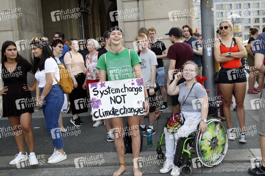 Demonstranten verschiedener Gruppen protestieren unter dem Motto 'Unteilbar: Für eine offene und freie Gesellschaft - Solidarität statt Ausgrenzung' gegen Rassismus, für soziale Gerechtigkeit und gegen Ausgrenzung am Altmarkt. Dresden, 24.08.2019