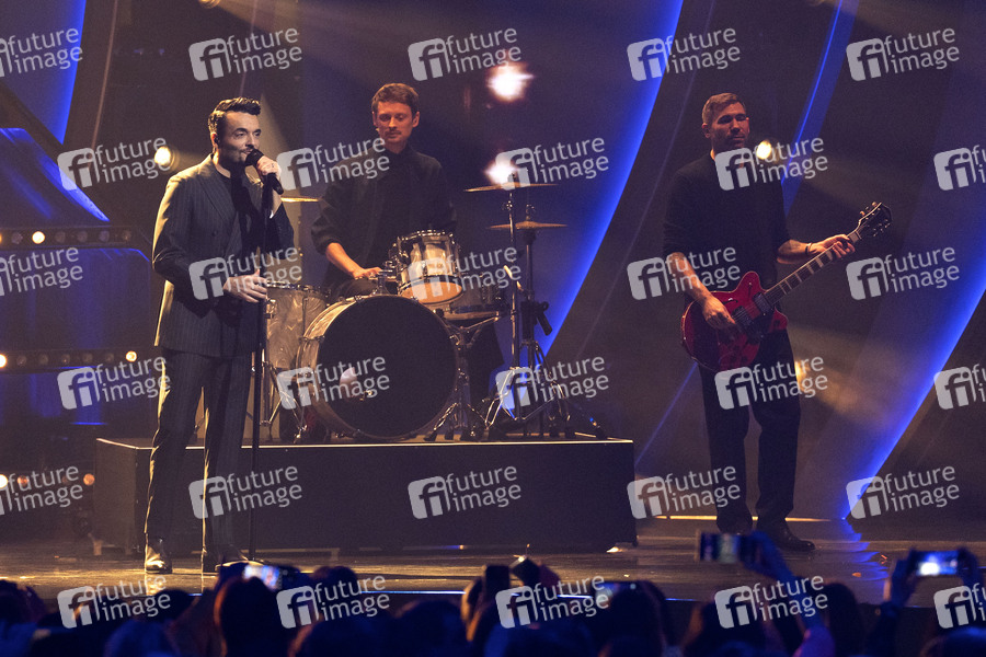 Giovanni Zarrella und Revolverheld in der ZDF TV-Show 'Die Giovanni Zarrella Show' in der Messehalle A1. Friedrichshafen, 15.02.2025