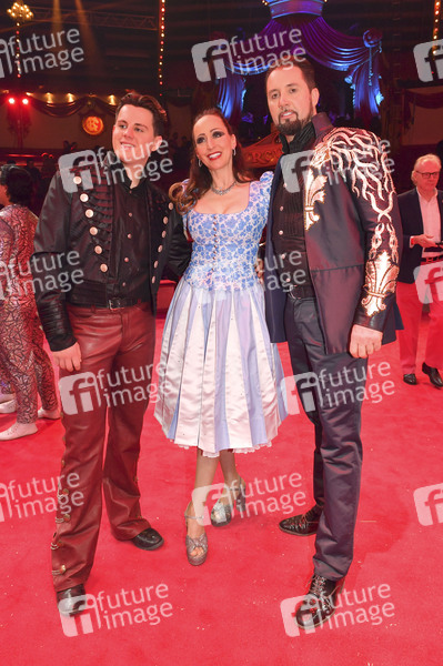 Alexis Lacey, Jana Mandana Lacey-Krone und Martin Lacey jr. bei der Premiere der Circus Krone Winterspielzeit mit dem Programm 'Ich.Du.Wir.Krone' im Circus Krone Bau. München, 25.12.2025
