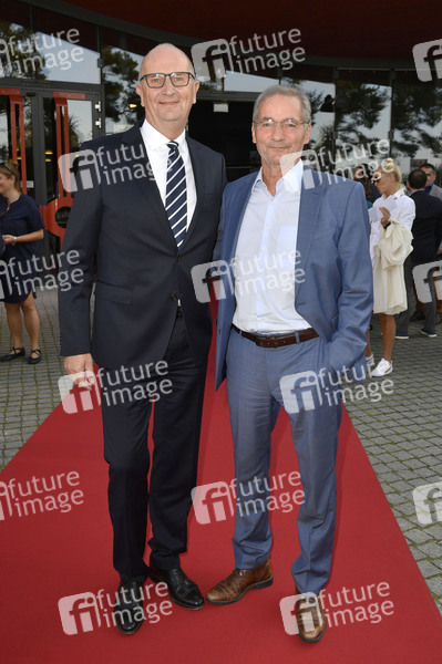 Dietmar Woidke und Matthias Platzeck bei der Eröffnung des 27. Jüdischen Filmfestivals Berlin & Brandenburg im Hans Otto Theater. Potsdam, 12.08.2021