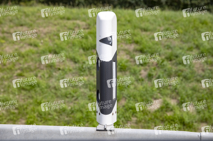 Die schwarz-weißen einheitlichen Pfosten am Straßenrand markieren den Straßenverlauf und zeigen auf größeren Straßen mit schwarzen Pfeilen die Richtung zur nächsten Notrufsäule. (Symbolfoto, Themenfoto) Rottenburg am Neckar, 31.08.2021