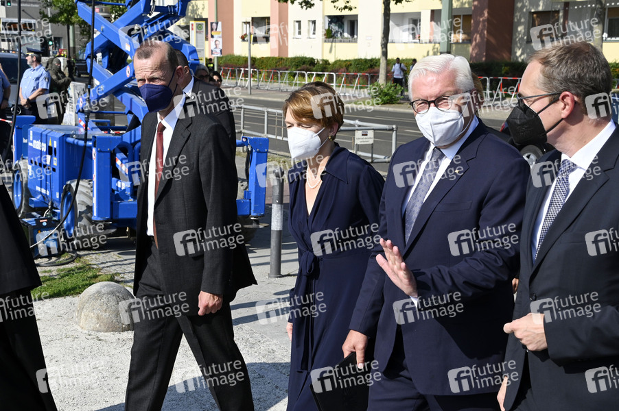 Axel Klausmeier, Elke Büdenbender, Frank-Walter Steinmeier und Michael Müller bei der zentralen Gedenkveranstaltung zum 60. Jahrestag des Mauerbaus auf dem Vorplatz der Kapelle der Versöhnung an der Gedenkstätte Berliner Mauer an der Bernauer Straße. Berlin, 13.08.2021