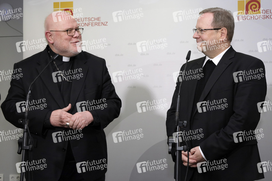 Reinhard Kardinal Marx und Georg Bätzing bei der Pressekonferenz zur Vorstellung des neuen Vorsitzenen der Deutschen Bischofskonferenz im Erbacher Hof: Mainz; 03.03.2020