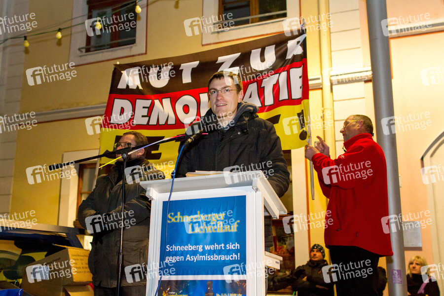 Stefan Hartung spricht auf Nazi-Demonstration gegen Ayslantenheime und Asylpolitik. Schneeberg, 16.11.2013