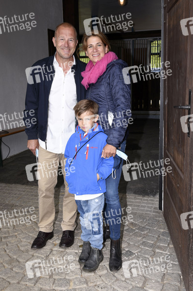 Heino Ferch mit Ehefrau Marie-Jeanette und Sohn Gustav Theo Cian beim Presserundgang auf der Circus Krone-Farm. Weßling, 29.06.2020