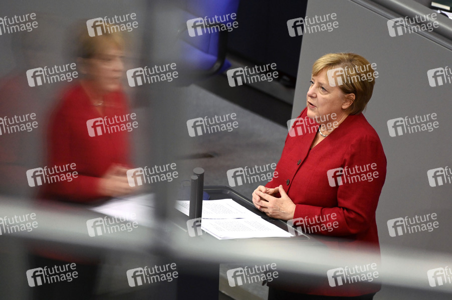 Angela Merkel in der 238. Sitzung des Deutschen Bundestages im Reichstagsgebäude. Berlin, 25.08.2021