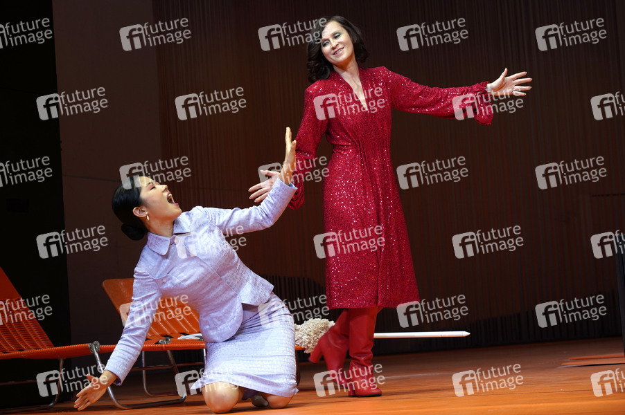 Kotbong Yang und Sophie Rois bei der Fotoprobe zum Theaterstück 'Liebe, einfach außerirdisch' im Deutschen Theater. Berlin, 28.06.2022