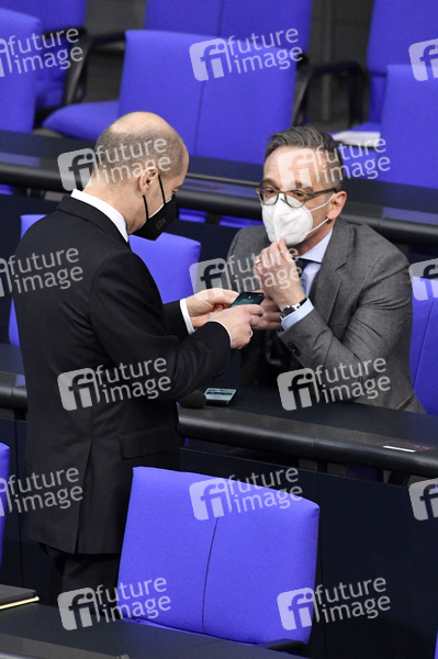 Olaf Scholz und Heiko Maas in der 209. Sitzung des Deutschen Bundestages im Reichstagsgebäude. Berlin, 11.02.2021
