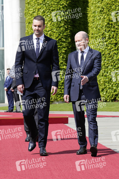 Milojko Spajic und Olaf Scholz beim Antrittsbesuch des Ministerpräsidenten von Montenegro mit militärischen Ehren und zu einem gemeinsamen Gespräch mit anschließendem Pressestatement im Bundeskanzleramt. Berlin, 29.04.2024