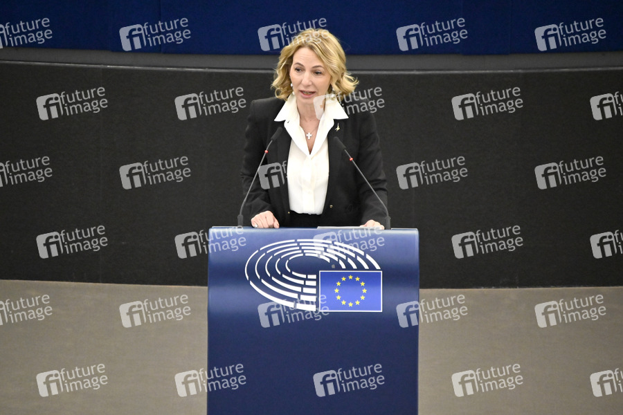 Krieg, Russland, Ukraine, Flucht, Hilfe. Flücthlinge, Europäisches Parlament, Plenum, Plenartagung, Plenardebatte, Plenarsitzung, Debatte, Rede, Politik, Strasbourg, Strassburg, Europaparlament, Europa-Politik, EU-Abgeordnete, EU-Parlament, EP, Parlament der Europäischen Union, European Parliament, European Union, Parlamentum Europaeum, MdEP, Mitglied des Europäischen Parlaments, Politikerin, Italien, Lega, Fraktion Identität und Demokratie, ID