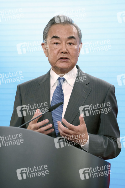 Wang Yi bei einer gemeinsamen Pressekonferenz des chinesischen Außenministers und des deutschen Außenministers im Auswärtigen Amt. Berlin, 03.07.2025