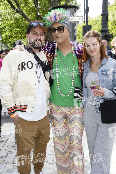 Felix von Jascheroff, Julian F.M. Stoeckel und Alexandra Sophie Winterberg bei der Präsentation des historischen Mercedes Benz SLC 280 Erwin bei den Classic Days Berlin auf dem Kurfürstendamm. Berlin, 10.05.2025