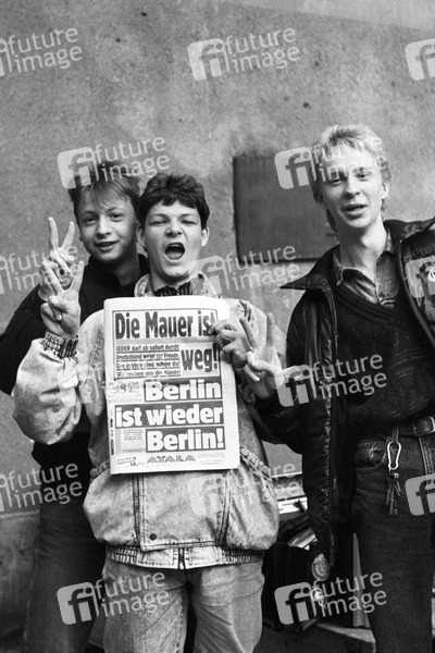 DDR, Wende, Wendezeit, friedliche Revolution, Mauerfall, Mauer, Maueröffnung, Grenzöffnung, Grenze, Schule, Schüler, Jugenliche, Zeitung, Zeitungen, Wiedervereinigung, Freude, Zeitgeschichte, Zeitgeschehen