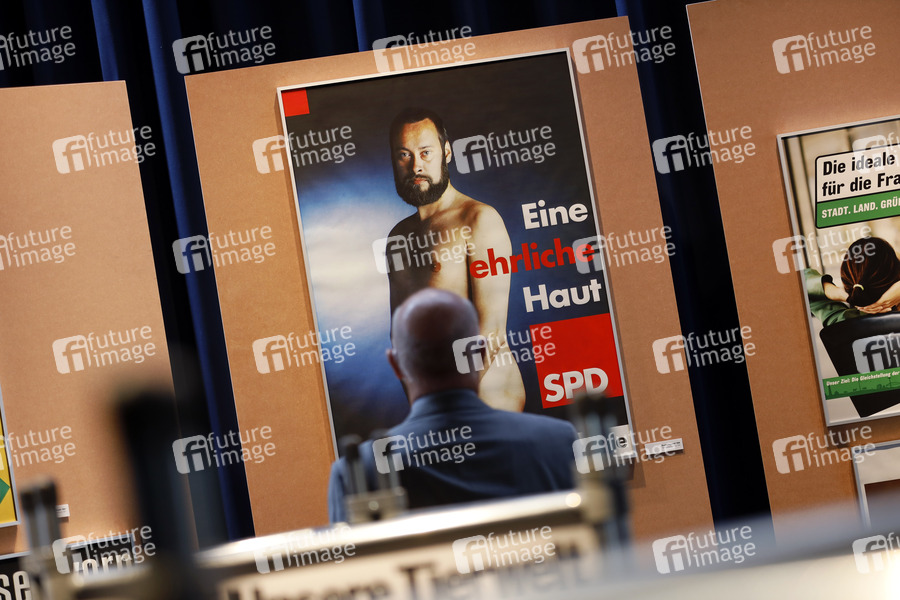 Impressionen von Wahlplakaten und Parteigeschenken beim Pressegespräch zur neuen Ausstellung 'Wähl mich! Parteien plakatieren' im Haus der Geschichte in Bonn. Vom 17. Juni bis 10. Oktober 2021 werden hier rund 100 historische Wahlplakate aus Bundestags- und Landtagswahlen präsentiert und dabei einzelne Komponenten der Wahlplakate in den Blick genommen: Köpfe, Farben und Slogans aus 70 Jahren demokratischer Wahlen in der Bundesrepublik Deutschland dokumentieren, wie sich Themen, Ästhetik und Ansprache der Wählerinnen und Wähler geändert haben. Bonn, 17.06.2021