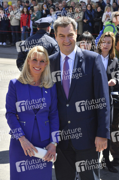 Markus Söder mit Ehefrau Karin Söder bei der Begrüßung der britischen Royals auf dem Max-Joseph-Platz vor der Residenz München. München, 09.05.2019