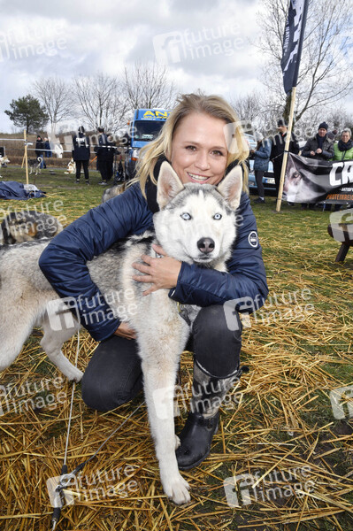 Moderatorin, Schauspielerin, Prominenz, Celebrity, Celebrities, Tier, Hund, Hunde, Huskys, Husky, Unterhaltung, Entertainment, Schlittenhunderennen, Ostsee, Sport, Charity, Benefiz