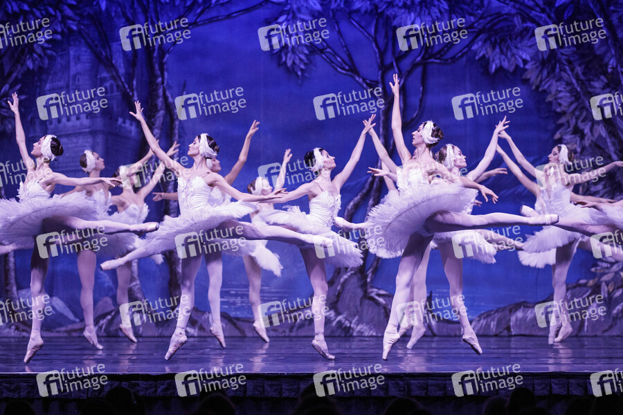 Ballett, Tanz, Ballettensemble, Körperbeherrschung, Körperspannung, Athletik, Körperkunst, Ballettkompanie, Schwanensee, Choreografie, Schwäne, Schwan, Tschaikowski, Schwanenprinzessin, Märchen, Märchenmotiv, Parabel, Fabel, Zauber, Fluch, Prinzessin, Traumprinz, Erlösung, Königin, Odile, schwarzer Schwan, weißer Schwan, Mythos, Libretto, Romantik, Zeitgenössischer Tanz, Tanztheater, Corps de ballet, Bühnenwerk, Aufführung, Stück, Bühne, Hofgesellschaft, Hofstaat, Operette, Ballerina, Primaballerina, Kultur, Kulturerbe, Nationalballett, Staatsballett, russische Kultur, Symbolbild, Symbolfoto