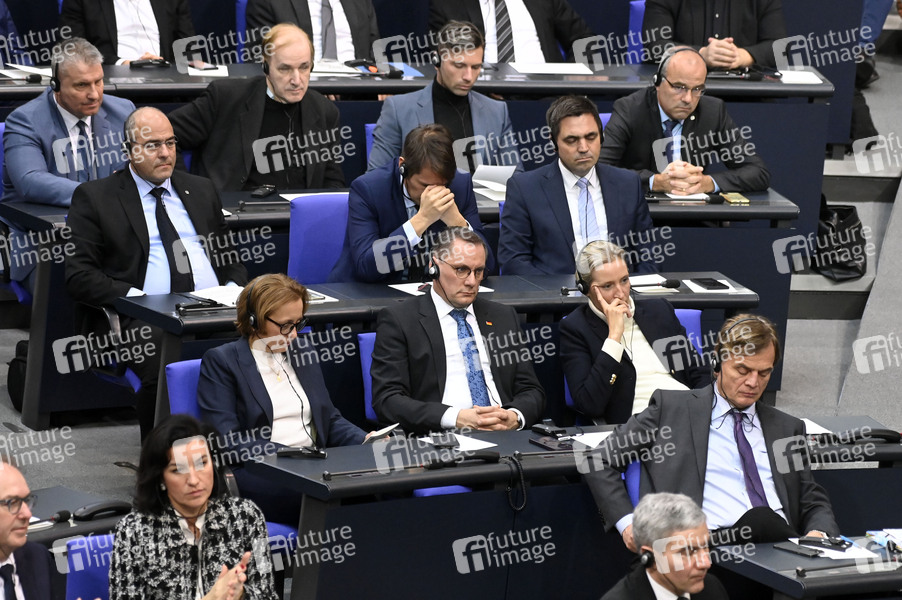Die AfD-Fraktion bei der Gedenkstunde des Deutschen Bundestages aus Anlass des Tages des Gedenkens an die Opfer des Nationalsozialismus im Reichstagsgebäude. Berlin, 29.01.2025