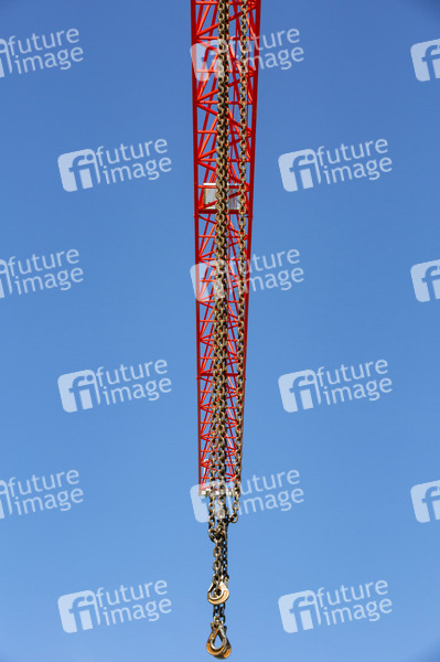 Kran, Turmkran, Turmkräne, Hebemaschine, Turmdrehkran, Obendreherkran, Krantechnik, Kranvermietung, Kranzubehör, Baukanhandel, Krananstrich, Kranfarbe, Baustelle, Hochbau, Hochbaukrane, Tiefbau, Fachwerkträger, Drehkranz, Vorderer Auslager, hinterer Ausleger, Katzausleger, Nadelausleger, Turmkrankonstruktion, Wolffkran, Baumaschinen, Baumaschienenhersteller, Kranhersteller, Turmspitze, Ballastgewicht, Gegenausleger, Traglast, Widerlager, Aufstellfläche, Bodenplatte, Betongewichte, Stahlrohrkonstruktion, Lastmoment, Krankomponenten, Fundamentanker, Turmabspannung, Innenkletterleiter, Kranfahrer, Kranführer, Krankanzel, Steuerkanzel, Wirtschaft, Bau, Symbolbild, Symbolfoto
