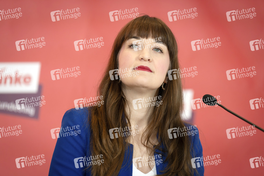Politik, Statement, Pressekonferenz, PK, Reichstag, Deutscher Bundestag, Demokratie, Parlament, Parlamentsgebäude, Volksvertreter, MdB, Mitglied des Bundestages, Abgeordnete, Politikerin, Vorsitzende der Fraktion Die Linke