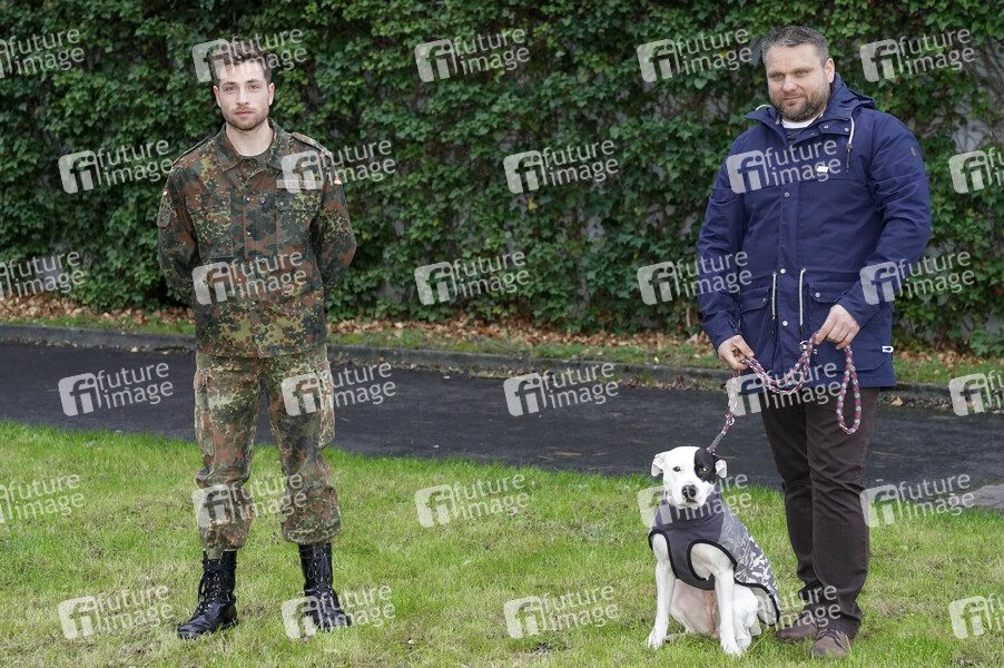 Dominik Flade und Detlef Förster mit Hund Bella beim Fototermin am Set der RTL TV-Serie 'Alles was zählt' in den MMC-Studios in Ossendorf. Köln, 03.12.2020