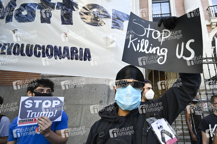 'Black Lives Matter' Demonstration gegen Polizeigewalt und Rassismus nach dem Tod des Afroamerikaners George Floyd vor der US-Botschaft. Madrid, 07.06.2020