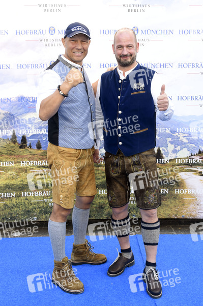 Axel Schulz und Björn Schwarz beim Fassanstich bei der 9. Hofbräu Berlin Wiesn im Hofbräu Wirtshaus Berlin. Berlin, 19.09.2020