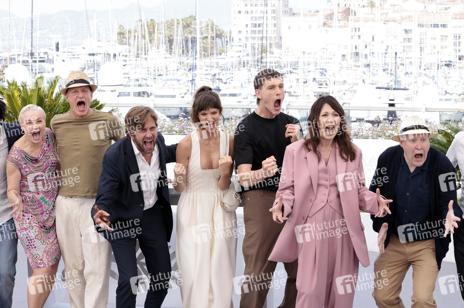 Vicki Berlin, Woody Harrelson, Ruben Östlund, Charlbi Dean Kriek, Harris Dickinson, Iris Berben und Henrik Dorsin beim Photocall zum Kinofilm 'Triangle of Sadness' auf dem Festival de Cannes 2022 / 75. Internationale Filmfestspiele von Cannes am Palais des Festivals. Cannes, 22.05.2022