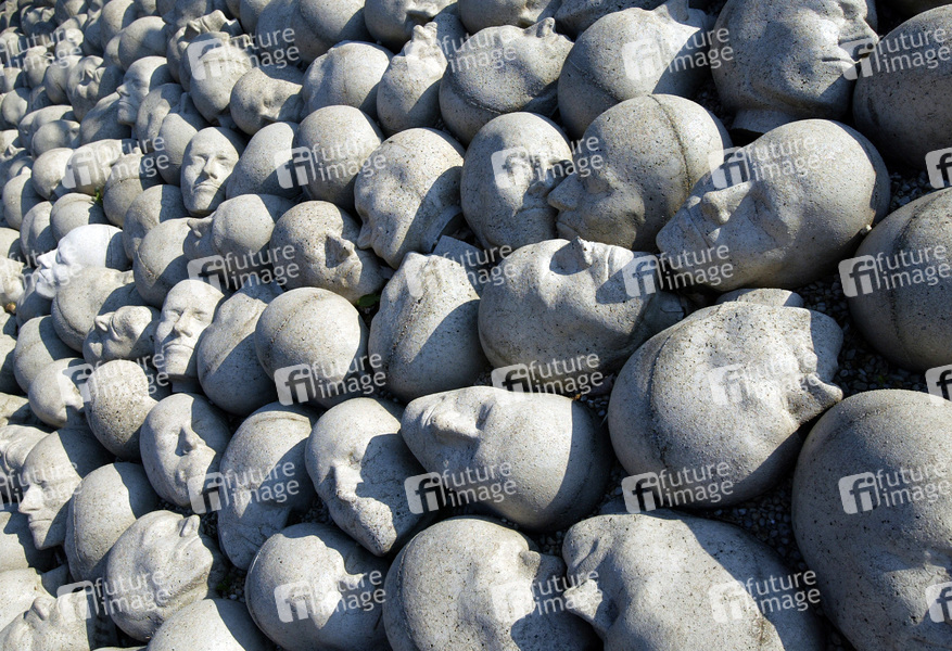 Kunstwerk nach dem Kopf des Künstlers 1980-1994, Feld mit weißen Köpfen aus Stein