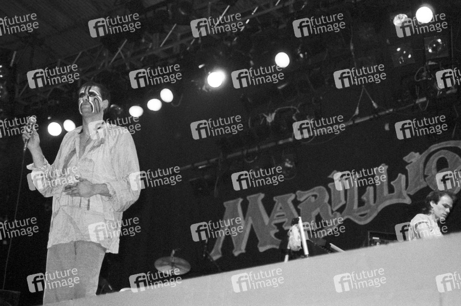 Fish und Mark Kelly von Marillion live auf dem Reading Rock Festival. Reading, 27.08.1983