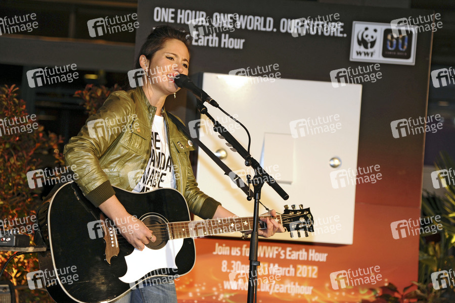 KT Tunstall startet den Countdown für die WWF Earth Hour durch Abschalten der Weihnachtsbeleuchtung im Westfield Shopping Centre, Shepherds Bush, London