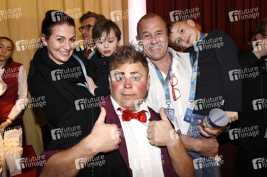 Heino Ferch mit Frau Marie-Jeanette, den Kindern Ava und Gustav und Equivokee Clown bei der Premiere vom 3. Winterprogramm 2019/2020 des Circus Krone im Kronebau. München, 01.03.2020