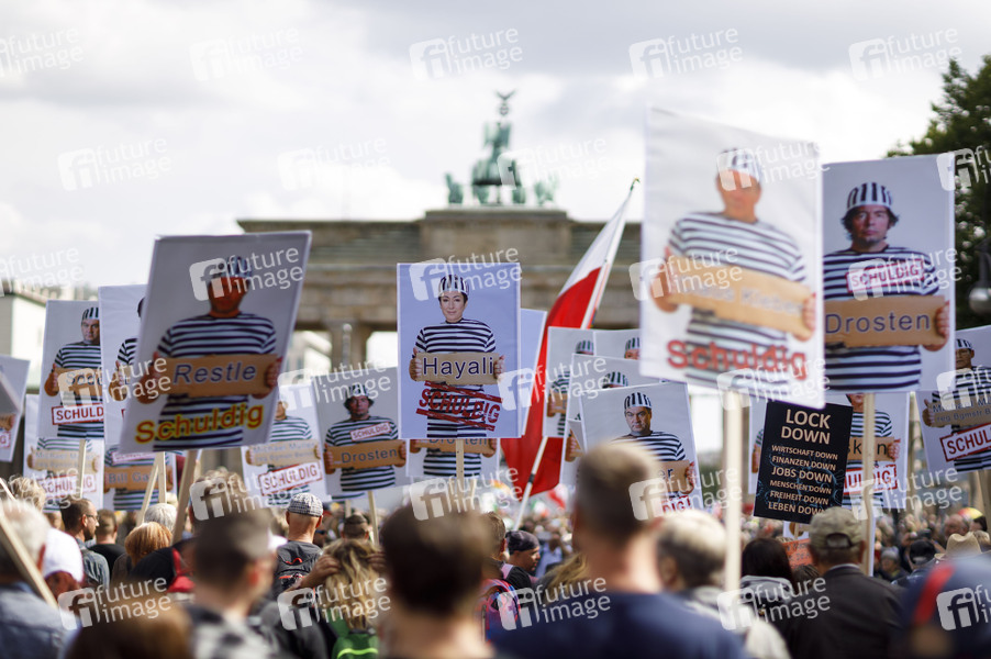 Demonstranten verschiedener Gruppierungen wie etwa der Initiative Querdenken 711 protestierten mit einer Großdemonstration in Berlin gegen die bestehenden Maßnahmen zur Eindämmung der Corona-Pandemie. Wegen Nichteinhaltung der polizeilichen Auflagen wurde die Demonstration durch die Polizei beendet. Es gab Rangeleien und Festnahmen. Berlin, 29.08.2020