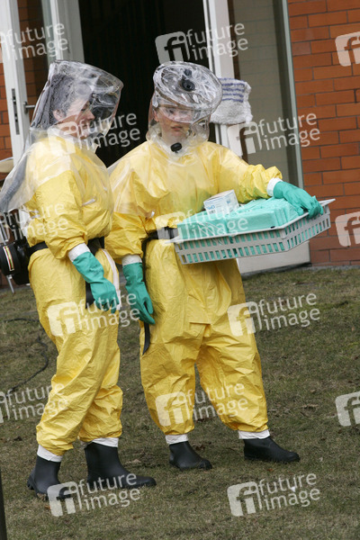 Dekontaminationsübung im Krankenhaus für die Notfallvorsorge bei einem Schadensereignis mit atomaren, chemischen oder biologischen Stoffen, Vivantes Klinikum im Friedrichshain