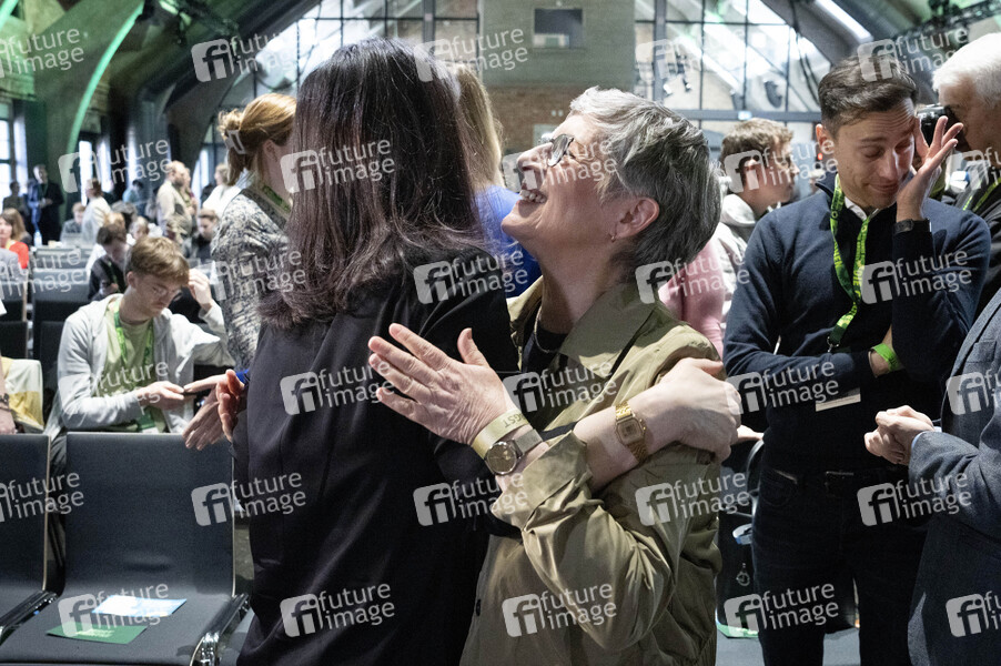 Annalena Baerbock und Britta Haßelmann beim Länderrat von Bündnis 90/Die Grünen im WECC Westhafen Event & Convention Center. Berlin, 06.04.2025