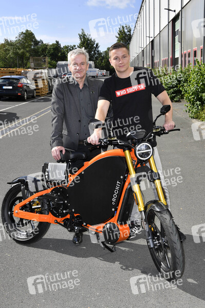 Andreas Zurwehme und Aaron Troschke beim Fototermin zum eROCKIT Press Day bei eROCKIT Systems. Hennigsdorf, 30.07.2020