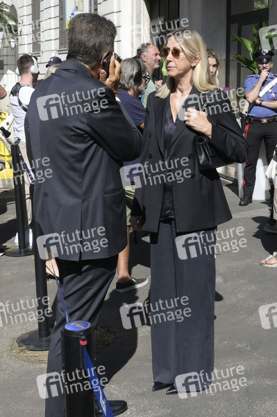Simona Agnes bei der Abschiednahme von Pippo Baudo im Teatro delle Vittorie. Rom, 18.08.2025