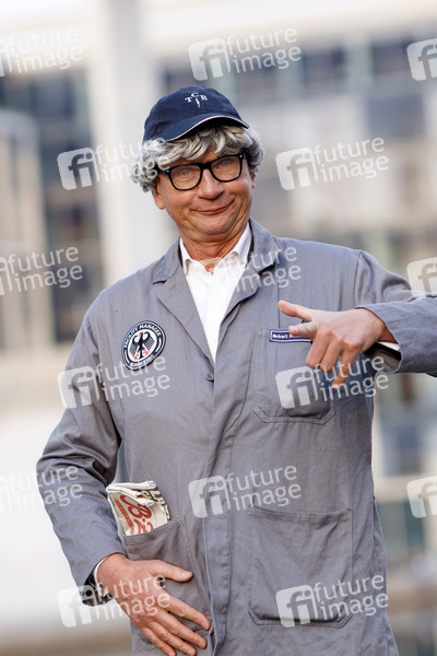 Claudius Fabig in seiner Rolle als Hausmeister Robert Götz Matuschewski ('Facility Manager des Bundestags') bei Dreharbeiten nach der 219. Sitzung des Deutschen Bundestages vor dem Reichstagsgebäude. Berlin, 26.03.2021
