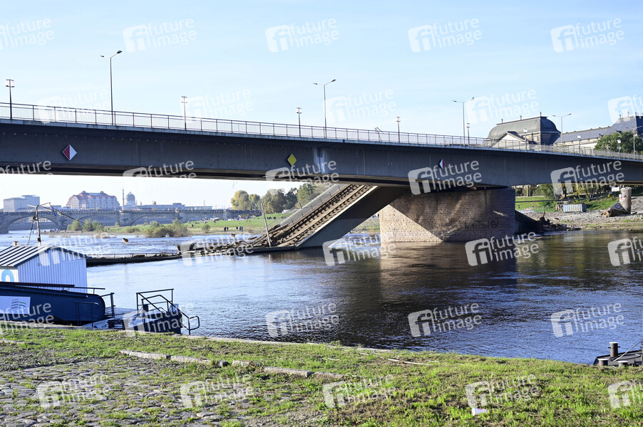 Straßenbrücke, Kulturdenkmal, Elbbrücke, Balkenbrücke, Spannbetonbrücke, Erbaut in den 1970er Jahren, Innere Altstadt, Innere Neustadt, Pirnaische Vorstadt, Carola von Wasa-Holstein-Gottorp, Namensgeber, Brücke, Einsturz, Elbe