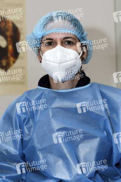 Die Betreuungskräfte der Seniorenbetreuung Home Instead werde 2x wöchenlich auf Corona getestet. Dafür dürfen sie die Eventlocation Conrad's Couch nutzen, wo während der Corona-Pandemie in Zukunft voraussichtlich auch Schulungen für neue Betreuungskräfte stattfindenwerden. (Symbolbild, Themenbild, Model-Release) Bergisch Gladbach, 09.02.2021