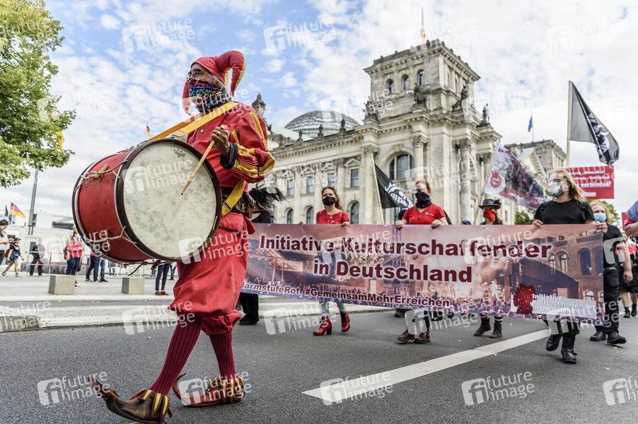 Unter dem Motto #AlarmstufeRot protestieren Mitarbeiter der Kultur-und Veranstaltungsbranche in Berlin für Soforthilfen für die Veranstaltungswirtschaft. Durch die Schließungen und Absage von Veranstaltungen während der Corona-Pandemie stehen viele Kulturschaffende, Veranstalter, Messe- oder Bühnenbauer, Techniker und Kunstschaffende vor dem Aus. Berlin, 09.09.2020