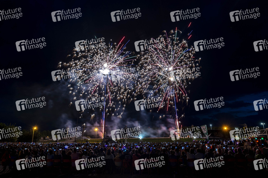 Pyro Games 2024 - Feuer, Licht, Laser. Das Duell der Feuerwerker auf dem Messegelände. Erfurt, 17.06.2024