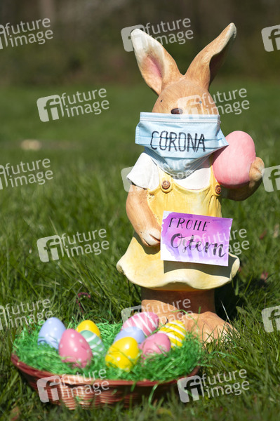Osterhase mit Osternest während der Coronakrise