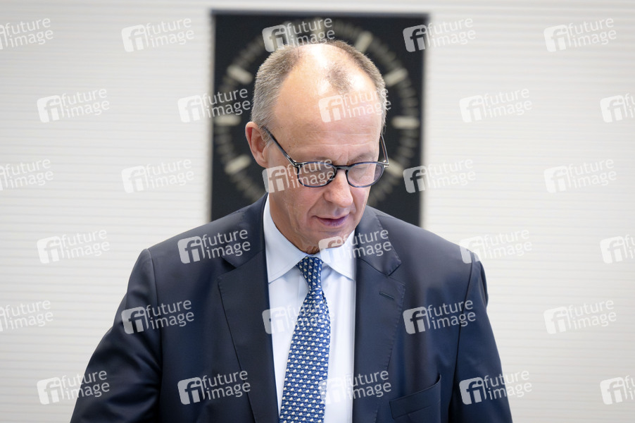 Friedrich Merz bei der Fraktionssitzung der CDU/CSU-Bundestagsfraktion im Reichstagsgebäude. Berlin, 02.12.2025