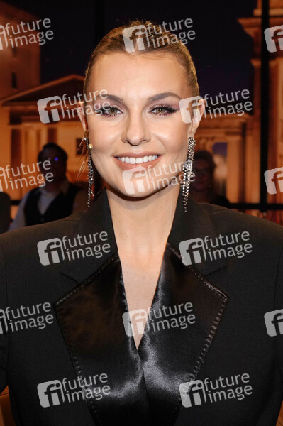 Laura Wontorra bei der Aufzeichnung der MDR/rbb-Talkshow 'Riverboat' im Studio A im rbb Fernsehzentrum. Berlin, 10.12.2021