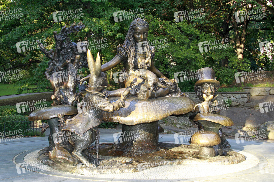 Bronzestatue, Skulptur, Künslter: José de Creeft, erschaffen 1959, Weißes Kaninchen, Hutmacher, Alice in Wonderland